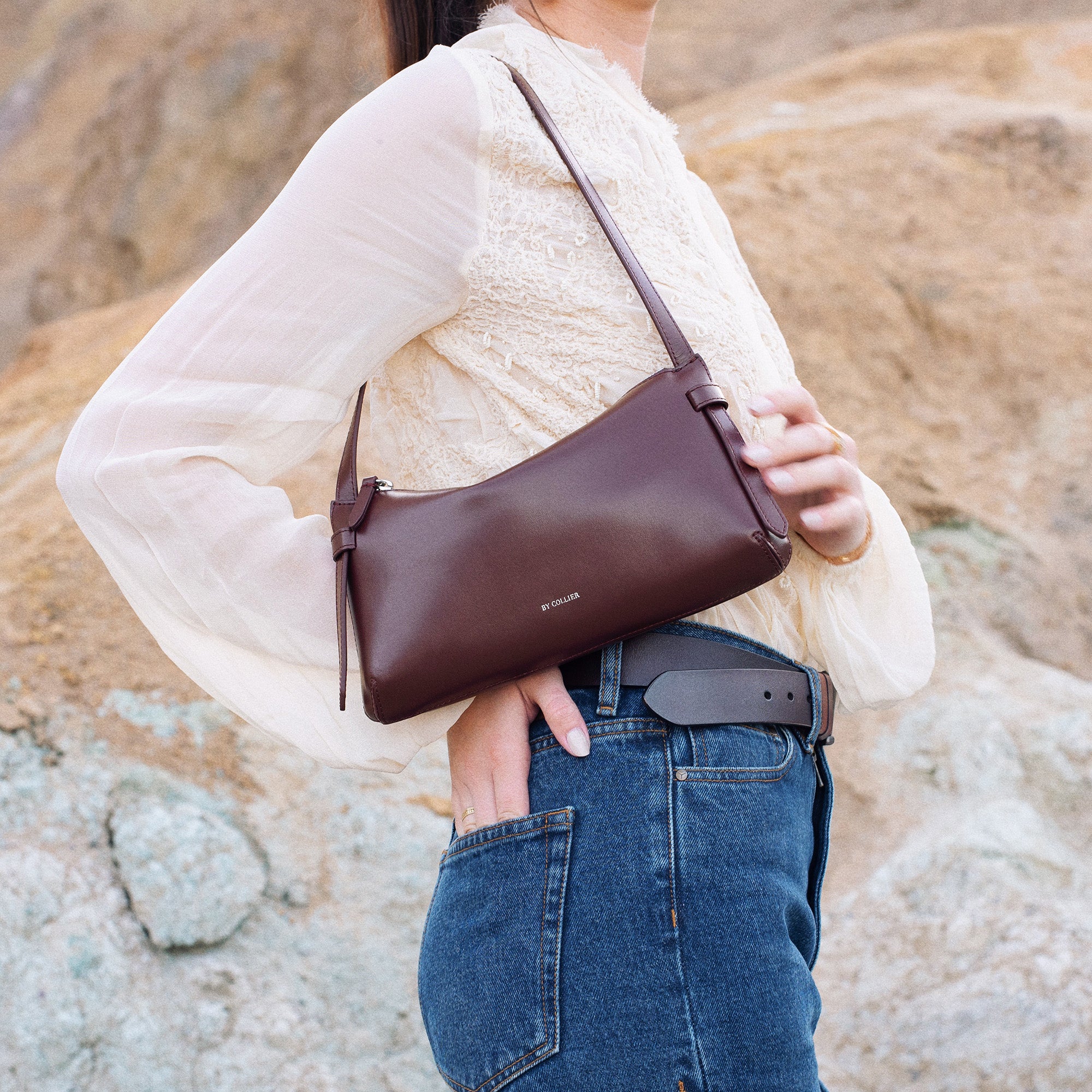 A classic shoulder bag silhouette that transitions effortlessly from day to evening. The unstructured design showcases the natural softness and drape of the Italian leather. This bag features a top zip closure to keep belongings secure and an interior pocket for added organization.